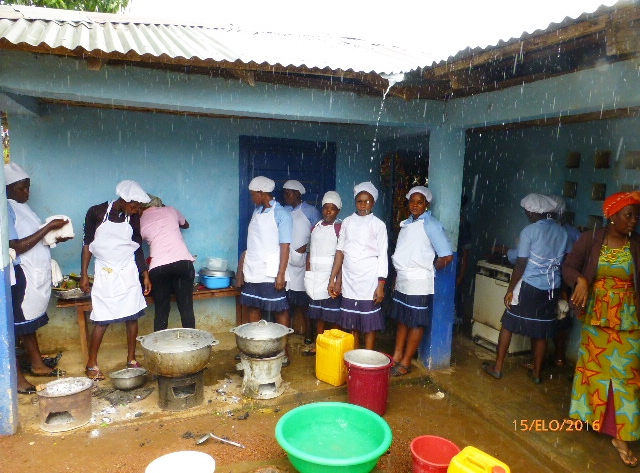 Kehitysyhteistyön ensikertalaiselle koulujen keittiöiden näkeminen oli yllättävää. Vaatimaton, ”länsimainen” keittiö oli olemassa, mutta omaksi koettiin ulkona, kuistin suojassa oleva keittiö. Riisiä ja tavallisesti tarjottavaa kasvis-lihamuhennosta keitetään muuripadassa, mutta sen lisäksi Kabalassa oli sähköhellan kaltainen hiilihella. Siellä missä meillä sähköhellan alaosassa säilytetään paistinpannua, niin Kabalan hellassa samassa paikassa oli hiilipesä. Ne olivat tehokkaita, ylhäällä levyjen tasolla halstrattiin kalolla ”tapenade”kuorrutuksella ja uunissa paistuivat hyvät sokerikakut. Kakkuvuoat olivat kovin vaihtelevia, monet entisiä säilykepurkkeja. Mutta ainakin minä sain tasaisesti paistunutta, maukasta kakkua.