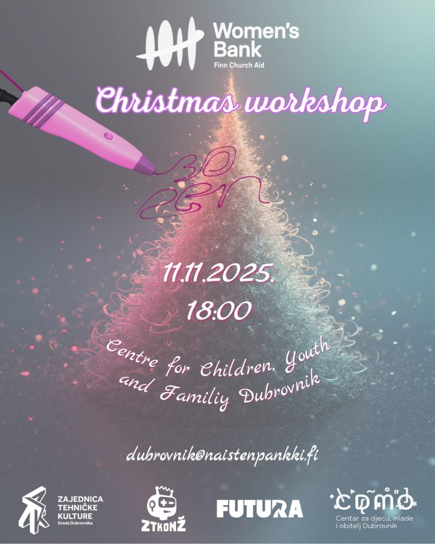 This time, we’ve prepared something new – and even though it’s only the beginning of November, it’s never too early for some Christmas preparations! The Women’s Bank Christmas 3D Pen Drawing Workshop will take place on November 11 at 6 PM at the Center for Children, Youth, and Families Dubrovnik (Obala pape Ivana Pavla II 44a).