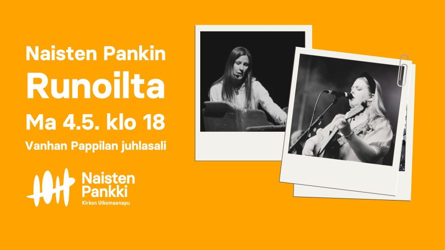Lämpimästi tervetuloa toukokuussa Naisten Pankin Runoiltaan! Tapahtuma toteutetaan yhteistyössä esiintyvän taiteilijan ja runoilijan Liisi Petterssonin sekä artisti Eerekan kanssa.
