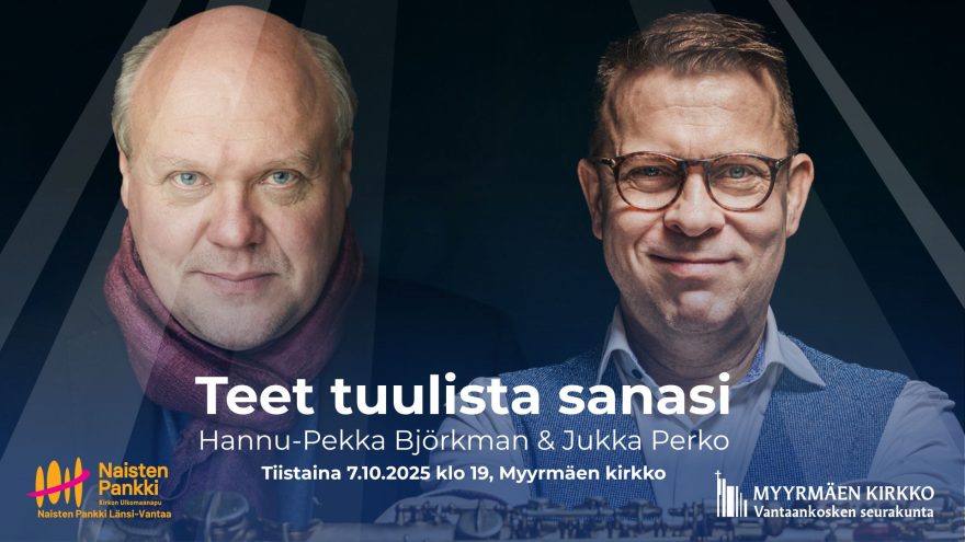 Ilta kahden upean taiteilijan kanssa, jotka eivät juuri esittelyjä kaipaa. Hannu-Pekka Björkman on tunnetuimpia ja arvostetuimpia suomalaisia näyttelijöitä. Jukka Perko on kansainvälisesti menestynyt jazz-muusikko ja saksofonisti. Esityksen otsikko Teet tuulista sanasi löytyy psalmista 104, joka on myös mukana illan ohjelmistossa.