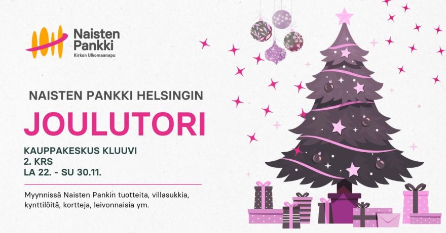 Tervetuloa Naisten Pankin Joulutorille hyväätekeville ostoksille ja virittäytymään joulumielelle! Samalla tuet naisia Aasiassa ja Afrikassa kouluttautumaan sekä hankkimaan itselleen ammatin!