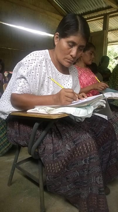 Opiskelu alkeellisissa oloissa ja kuumuudessa on erittäin haastavaa, ja mukana olevat lapsetkin vievät osan huomiosta. Naiset ovat kuitenkin motivoituneita ja keskittyneitä opiskeluun. Heidän toiveissaan on oppia lukemaan, jotta voisivat esimerkiksi arvioida lastensa koulun käynnin edistymistä. Usealle naisista lukutaito on itseisarvo sinänsä. Kuvassa opiskelee Petronila Xol.